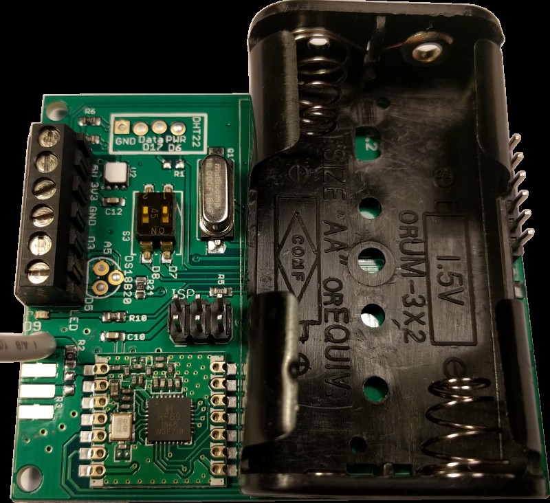 The emonTH V2 is an open-source, wireless, battery powered temperature and humidity monitoring node.